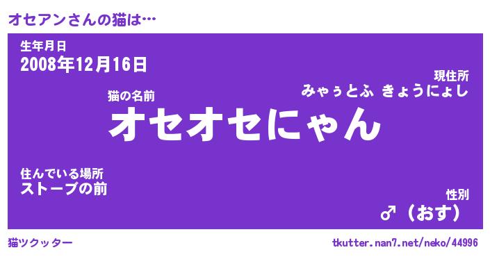 | ポケモン風あだ名 | 『オセチュウ』『オセアダネ』 |