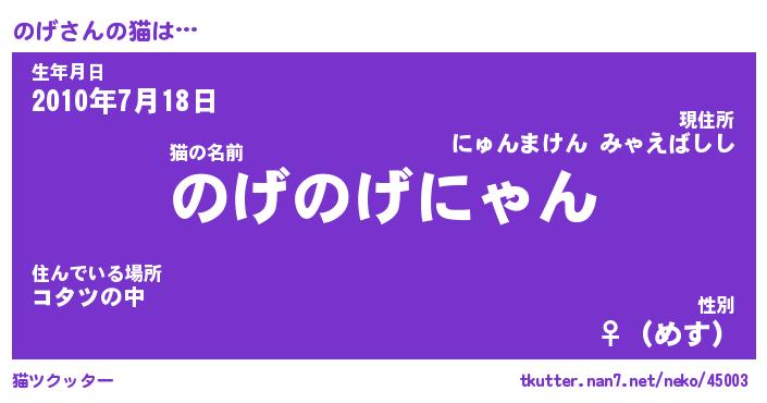 | 意味不明あだ名 | 『ペロリンのげ』『のげフォーエバー』 |