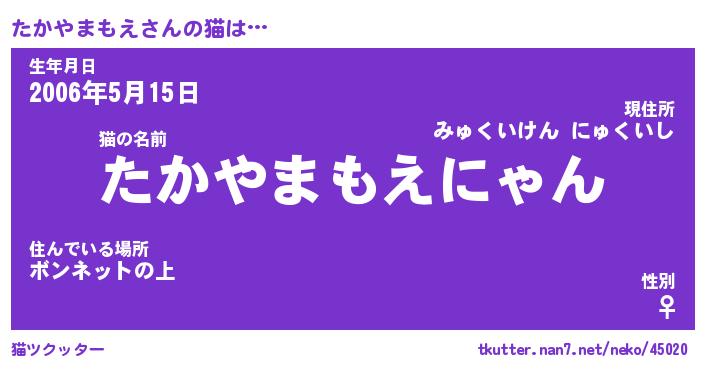 | 意味不明あだ名 | 『ペロリンたかやまもえ』 |