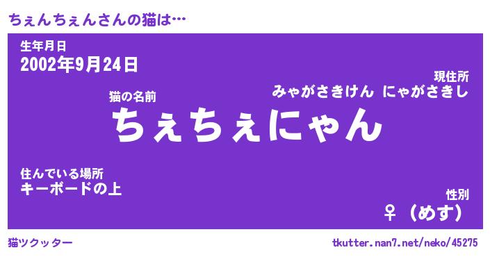 | ポケモン風あだ名 | 『チェチュウ』『チェンダネ』 |