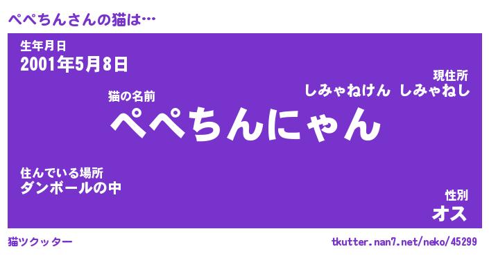 | 男性向けラノベタイトル風あだ名 | 『ぺぺちんの憂鬱』 |