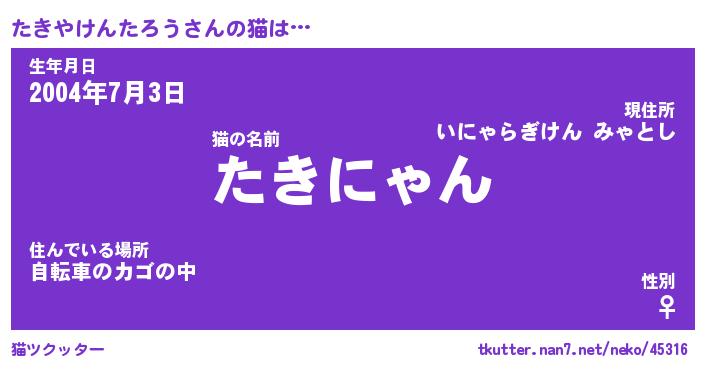 | 2回繰り返すあだ名 | 『たきたき』『たたきき』『にたにた』 |