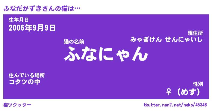 | ヘコむあだ名 | 『ふなにー』『なまこ酢』『ふなお』 |