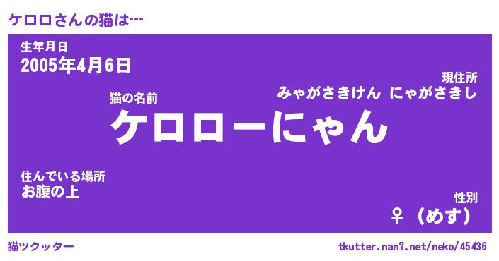 | ポケモン風あだ名 | 『ケロチュウ』『ケロロダネ』 |