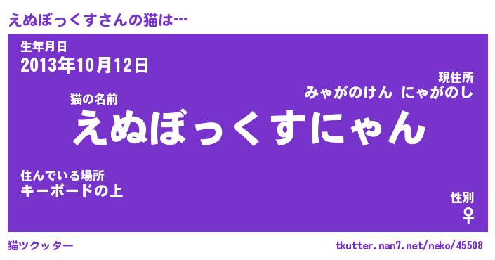 | 女子向けラノベタイトル風あだ名 | 『(仮)えぬぼっくすのやんごとなき事情』 |