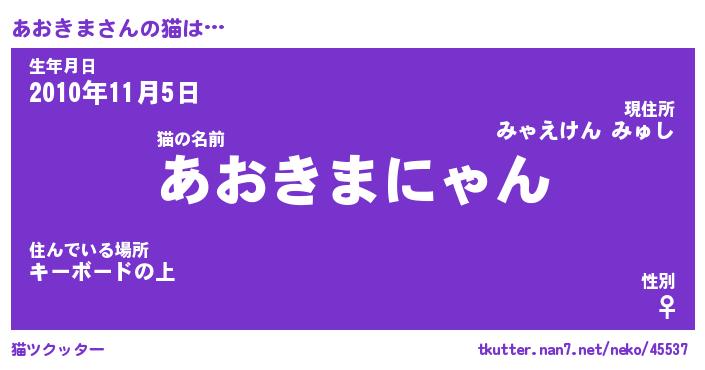 | ファンタジー風あだ名 | 『アオフェル』『エターナルアオキマー』 |