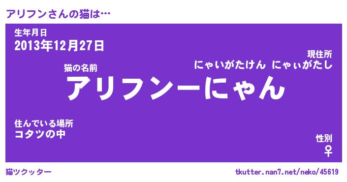 | 意味不明あだ名 | 『ペロリンアリフン』『永久保存アリフン』 |