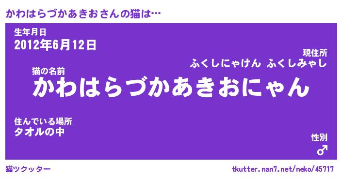 | 男性向けラノベタイトル風あだ名 | 『かわはらづかあきおの憂鬱』 |
