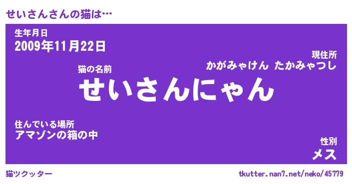 | 意味不明あだ名 | 『ペロリンせいさん』『永久保存せいさん』 |