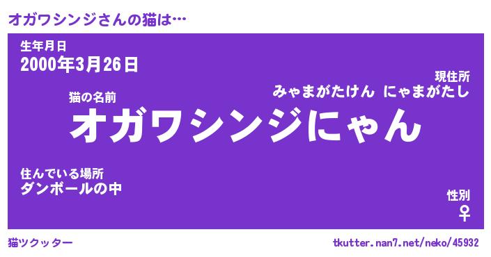 | 欧米人風あだ名 | 『マイケルオガワシンジ』 |
