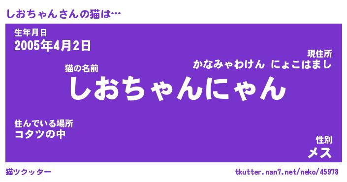 | 男性向けラノベタイトル風あだ名 | 『しおちゃんの憂鬱』 |
