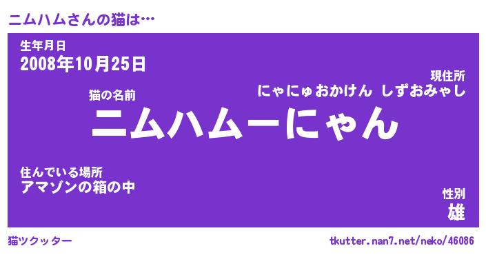| 意味不明あだ名 | 『ペロリンニムハム』『永久保存ニムハム』 |