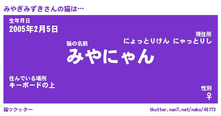 | ヘコむあだ名 | 『みやにゅー』『豆乳』『みやを』 |
