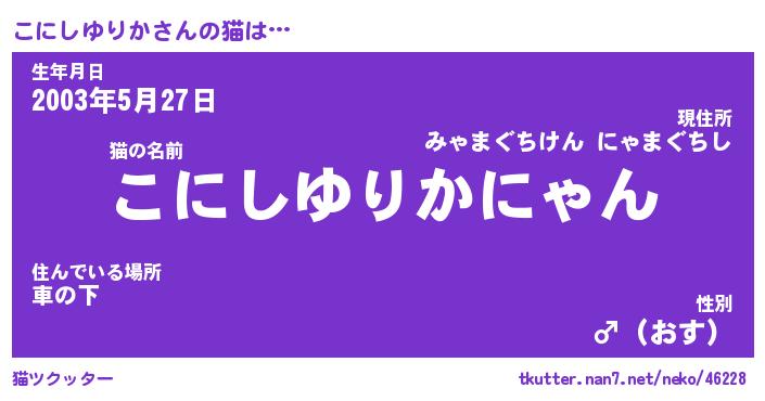 | 男性向けラノベタイトル風あだ名 | 『こにしゆりかの憂鬱』 |