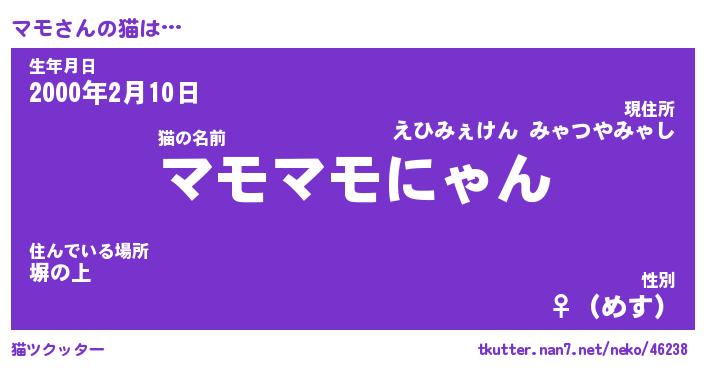 | ポケモン風あだ名 | 『マモチュウ』『マモダネ』『ヒマモ』 |