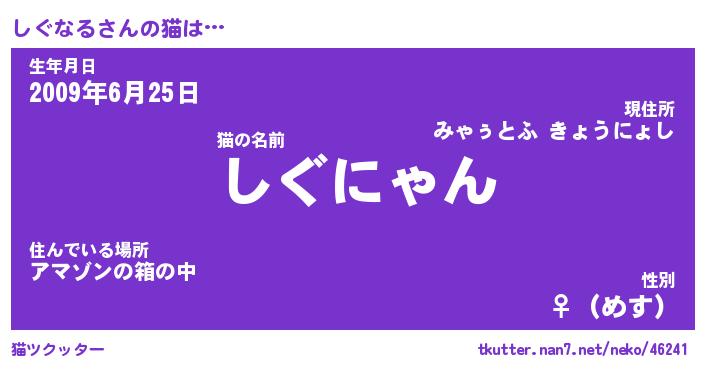 | 意味不明あだ名 | 『ペロリンしぐなる』『永久保存しぐなる』 |