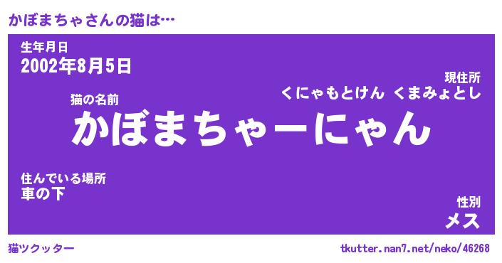 | 2回繰り返すあだ名 | 『かぼかぼ』『かかぼぼ』『げほげほ』 |