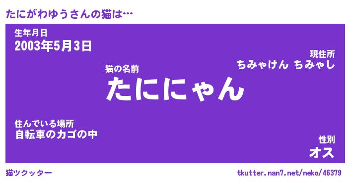 | ポケモン風あだ名 | 『タニチュウ』『タニガダネ』 |