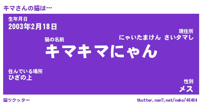 | ポケモン風あだ名 | 『キマチュウ』『キマダネ』『ヒキマ』 |