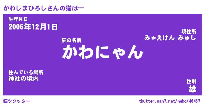 | ポケモン風あだ名 | 『カワチュウ』『カワシダネ』 |