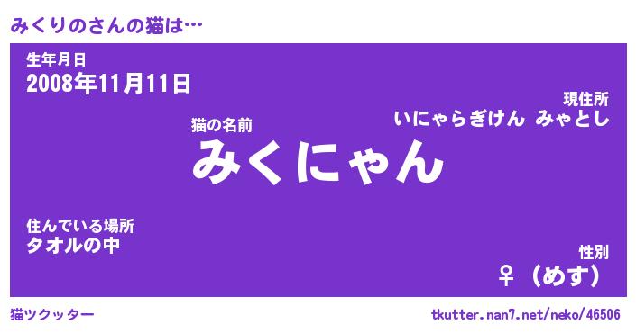 | 2回繰り返すあだ名 | 『みくみく』『みみくく』『からから』 |