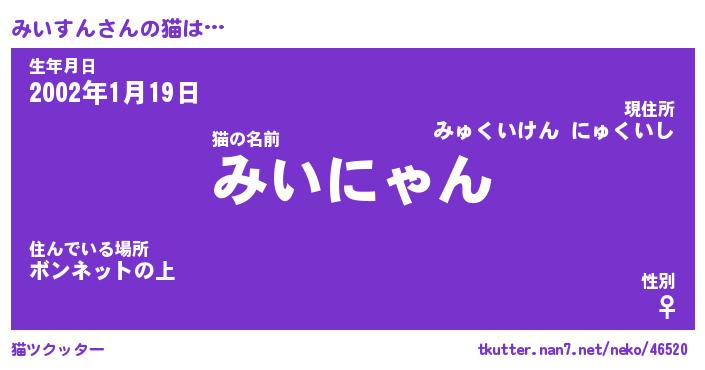 | ファンタジー風あだ名 | 『ミイフェル』『エターナルミイスンー』 |