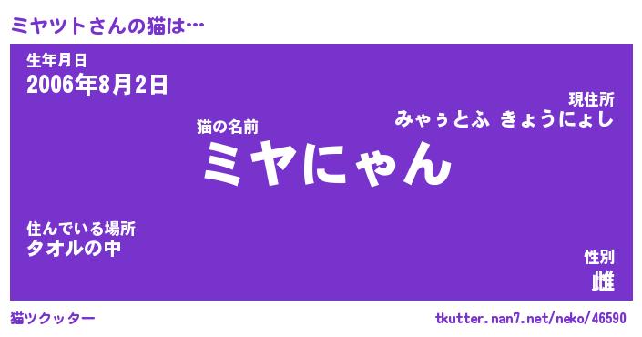 | ファンタジー風あだ名 | 『ミヤフェル』『エターナルミヤツトー』 |