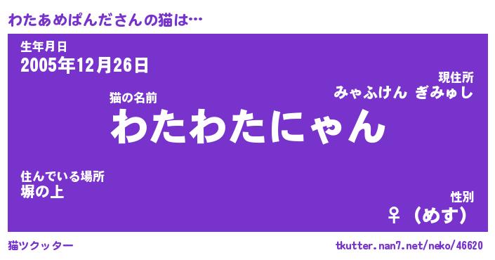 | ポケモン風あだ名 | 『ワタチュウ』『ワタアダネ』 |