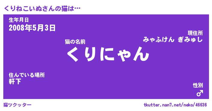 | 男性向けラノベタイトル風あだ名 | 『くりねこいぬの憂鬱』 |
