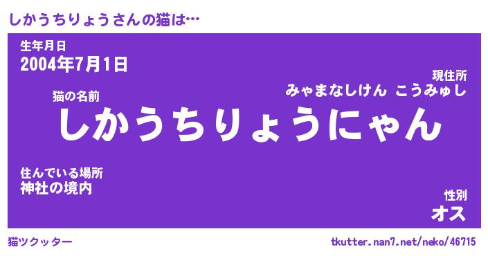 | 男性向けラノベタイトル風あだ名 | 『しかうちりょうの憂鬱』 |