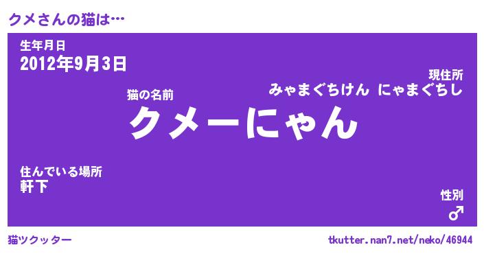 | 2回繰り返すあだ名 | 『クメクメ』『ククメメ』『うずうず』 |