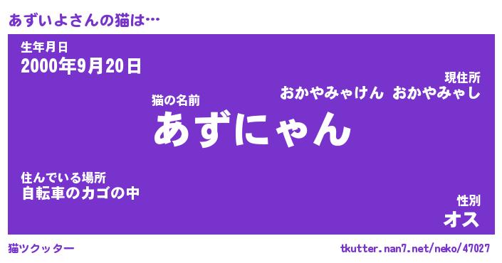 | 男性向けラノベタイトル風あだ名 | 『あずいよの憂鬱』 |