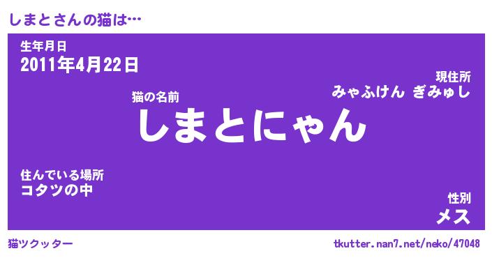 | ファンタジー風あだ名 | 『シマフェル』『エターナルシマトー』 |