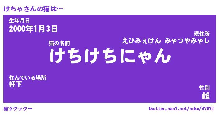 | 意味不明あだ名 | 『ペロリンけちゃ』『けちゃフォーエバー』 |