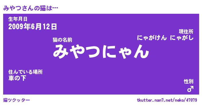 | ファンタジー風あだ名 | 『ミヤフェル』『エターナルミヤツー』 |
