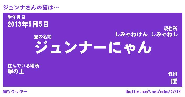 | ポケモン風あだ名 | 『ジュチュウ』『ジュンダネ』 |