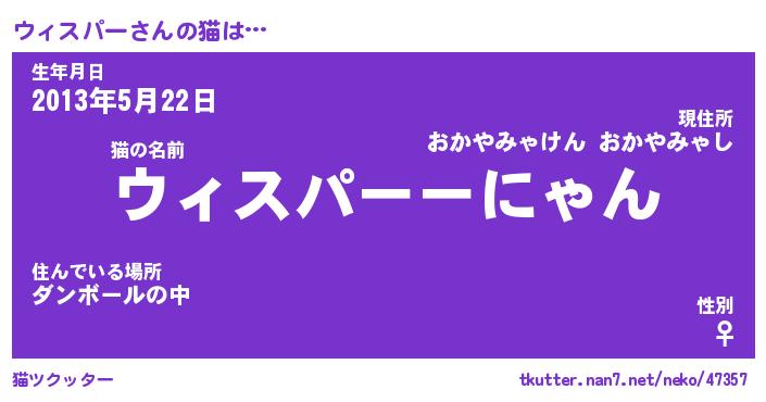| ファンタジー風あだ名 | 『ウィフェル』『エターナルウィスパーー』 |