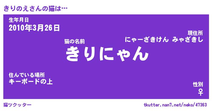 | 生年月日? …「くろねこ」 | 8月01日 10:16 |
