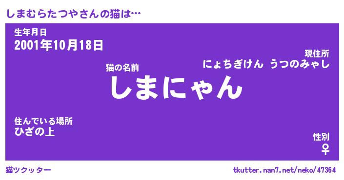 | ヘコむあだ名 | 『しまふぇ~』『つくし』『しまっ子』 |