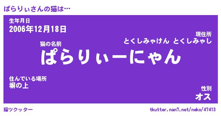 | 意味不明あだ名 | 『ペロリンぱらりぃ』『永久保存ぱらりぃ』 |