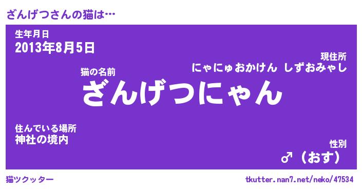 | ファンタジー風あだ名 | 『ザンフェル』『エターナルザンゲツー』 |