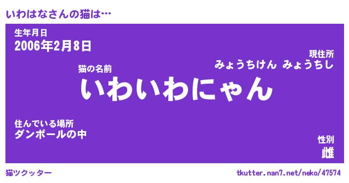 | 意味不明あだ名 | 『ペロリンいわはな』『永久保存いわはな』 |