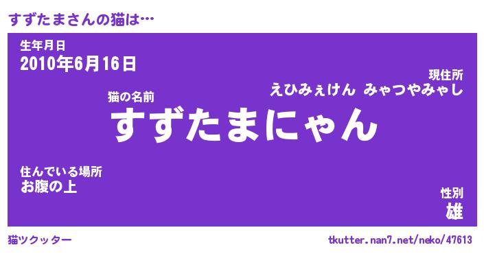 | 意味不明あだ名 | 『ペロリンすずたま』『永久保存すずたま』 |