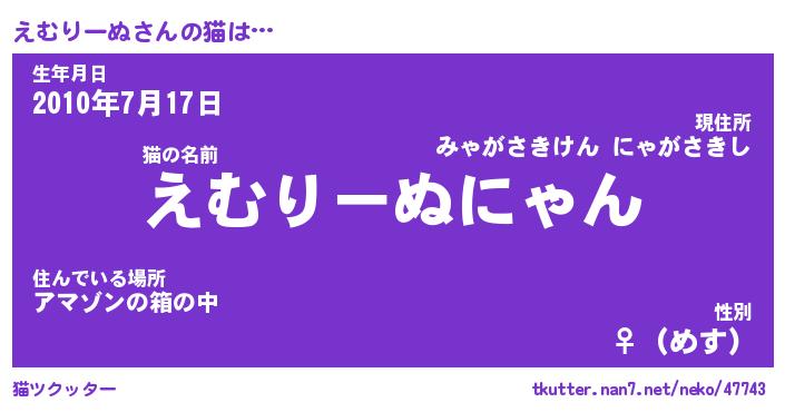 | 肩書あだ名 | 『えむりーぬ店長』『えむりーぬ大統領』 |
