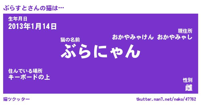 | 意味不明あだ名 | 『ペロリンぶらすと』『永久保存ぶらすと』 |