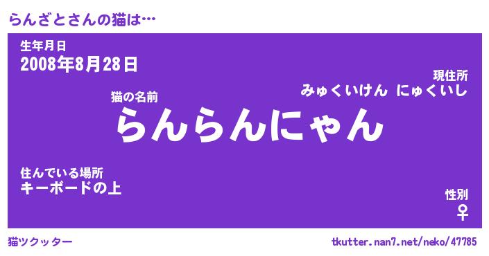 | 意味不明あだ名 | 『ペロリンらんざと』『永久保存らんざと』 |