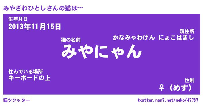 | ポケモン風あだ名 | 『ミヤチュウ』『ミヤザダネ』 |