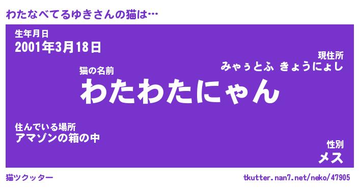 | ツイッター | わたなべてるゆきさんのツイッターID『dendenmushi_nyan』 |