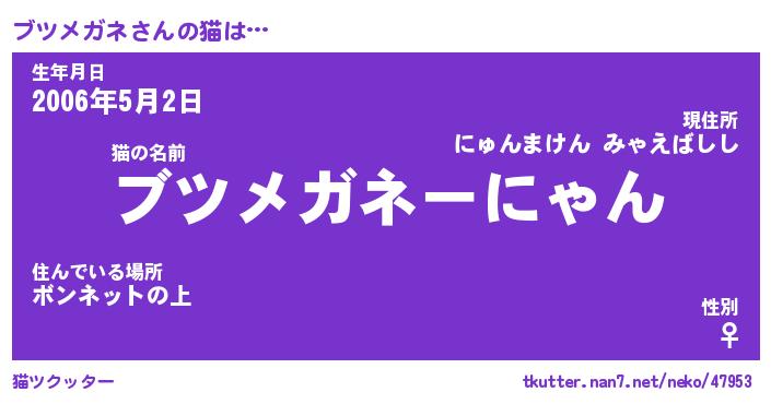 | ポケモン風あだ名 | 『ブツチュウ』『ブツメダネ』 |