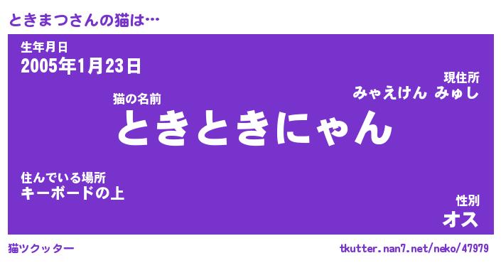 | 意味不明あだ名 | 『ペロリンときまつ』『永久保存ときまつ』 |